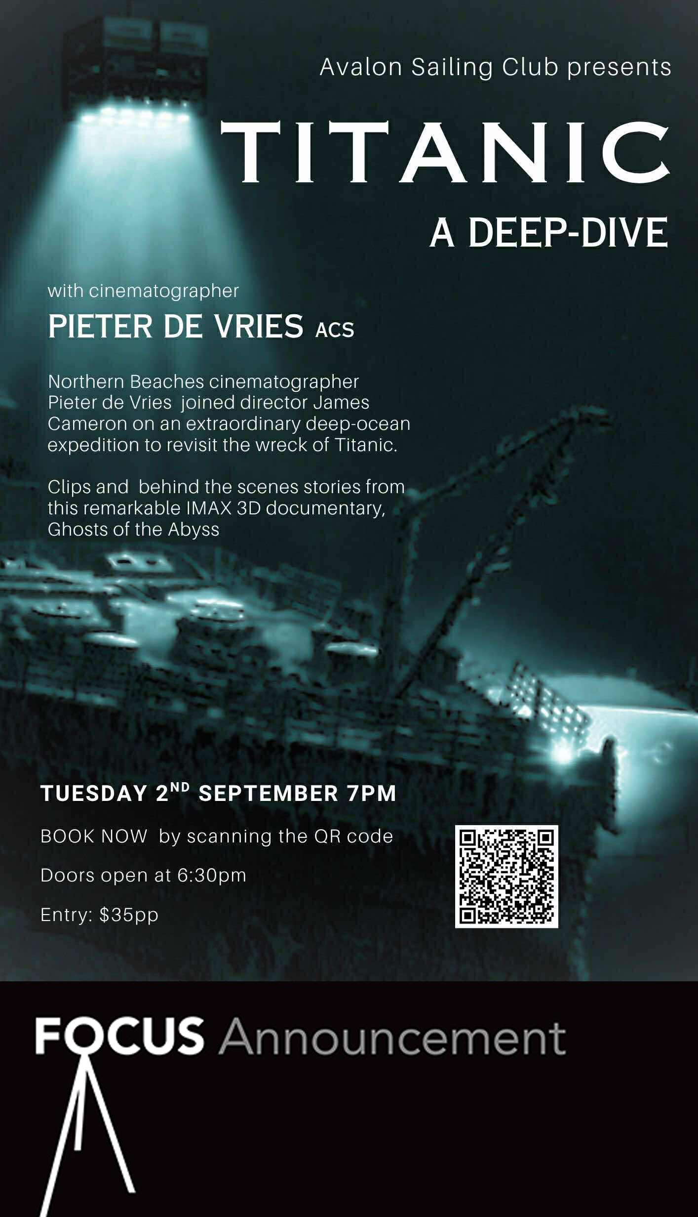 The club has invited renowned Northern Beaches cinematographer and Focus member, Pieter de Vries ACS, to host an exclusive event where he will screen and discuss his work with Academy Award-winning director James Cameron.